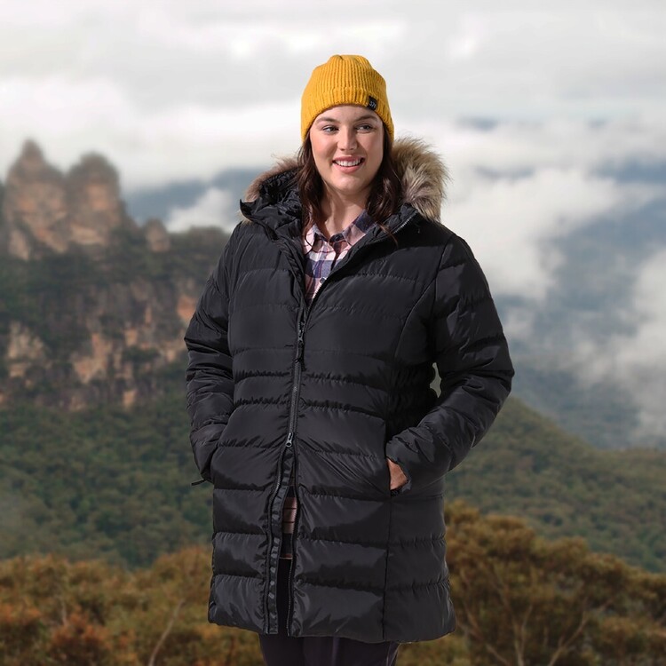 Gondwana Women’s Cattai Long Plus Size Puffer Jacket Black