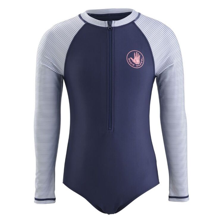 Body Glove Youth Girls Long Sleeve Zip Striped Rash Vest Navy Stripe