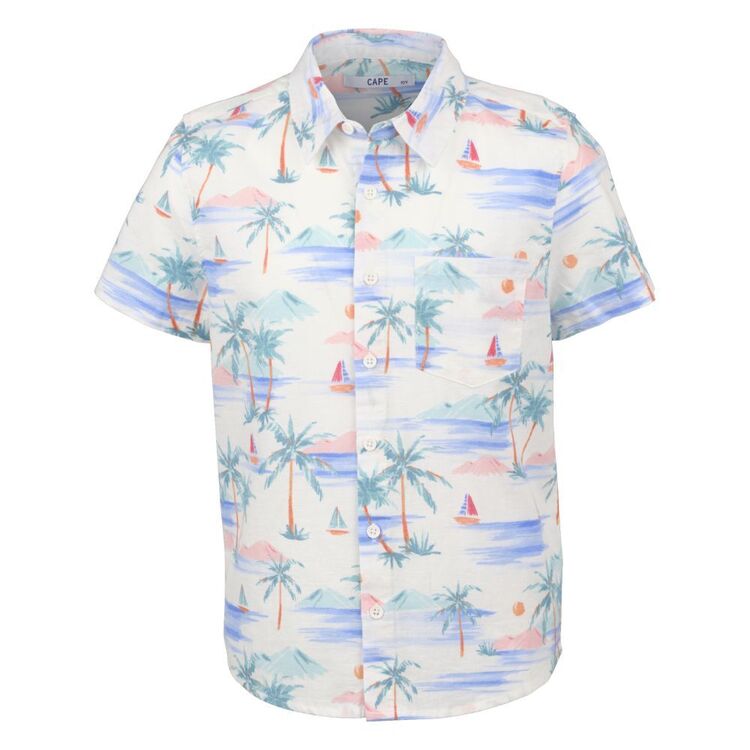 Cape Youth Boys Palm Tree Short Sleeve Shirt White