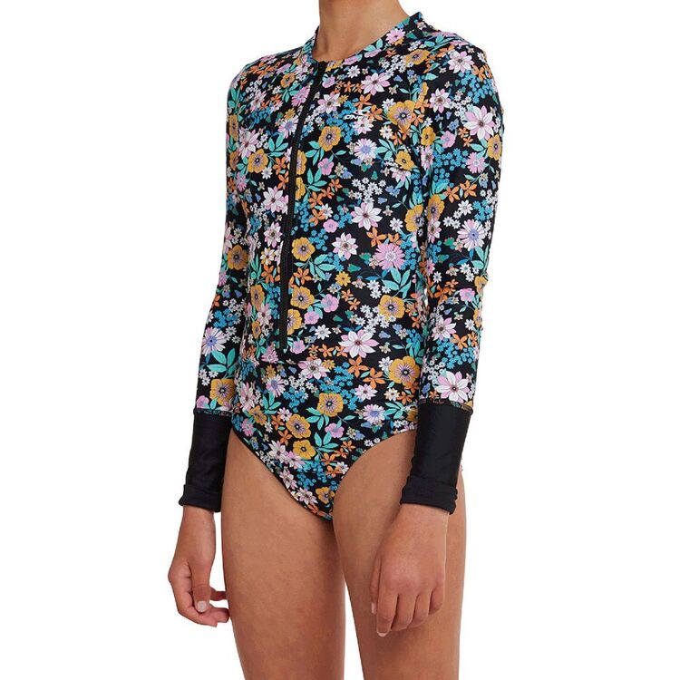 O’Neill Girls’ Lane Full Zip Long Sleeve Rash Vest GMA2 Gunmetal & Alexa Tile