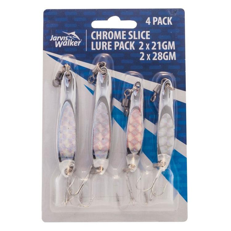 Jarvis Walker Chrome Slice Lures 4 Pack Silver 3 / 4 oz & 1 oz
