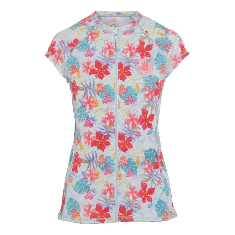Body Glove Women’s Floral Wave Full Zip Cap Sleeve Rash Vest Print