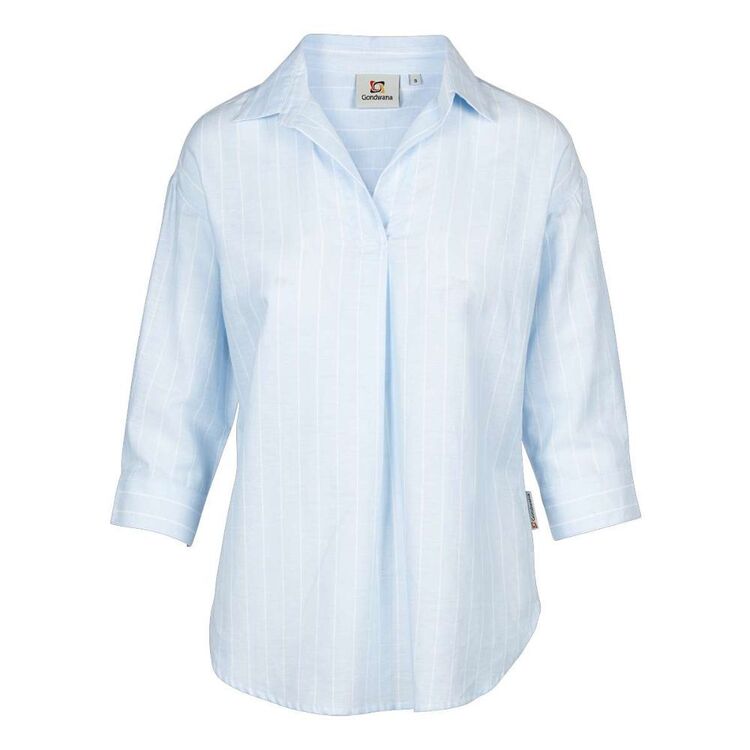 Gondwana Women’s Bouddi 3/4 Sleeve Shirt Plus Size Bluebell Stripe