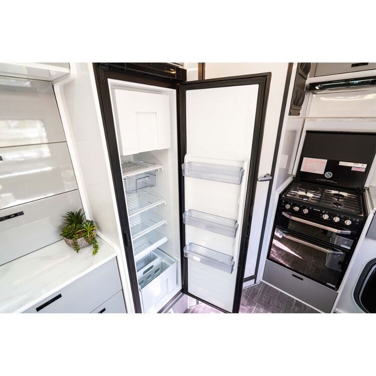 Chill your drinks in the internal fridge or keep your catch fresh in the 80L external Arctic Fridge. Whether in the scorching heat of Uluru or the chilly evenings of Tasmania, stay comfortable with a roof-mounted air conditioner and a diesel heater. The caravan’s REDARC 2kW Pure Sinewave Inverter ensures uninterrupted power, backed by a fleet of energy solutions including a Manager30 battery management & charging system, 4 x 100 Amp Renogy lithium batteries, and 600-Watt roof-mounted solar panels.