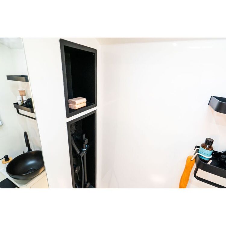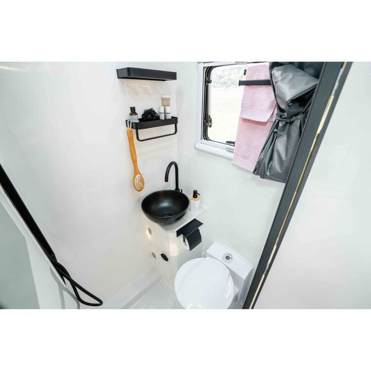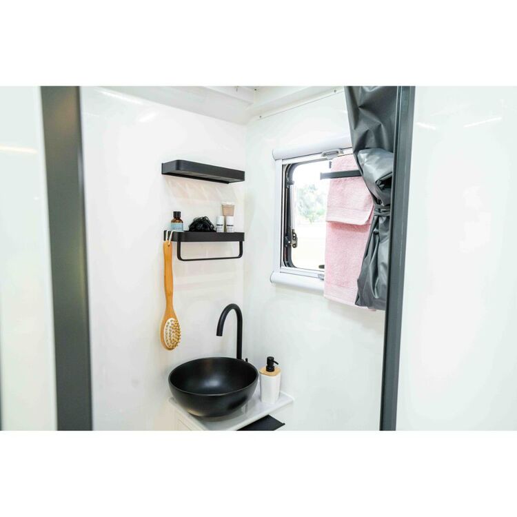 The caravan’s double-glazed 3-stage opening windows provide panoramic views of Australia’s stunning dawns and dusks, while LED lights & reading lights create the perfect ambience. Stay connected with 2 x wireless mobile phone chargers, and revel in the freshness of the wilderness with an external shower & ensuite tent.