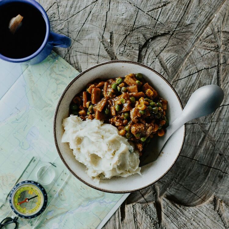 Delicious meal that can be prepared in the pack in 10 minutes with the addition of boiling water