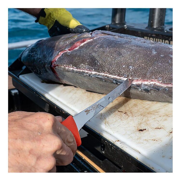 Available in three sizes, the Black Magic Thin Blade Fillet Knife is the quality piece of silverwear from the brand known for greatness. A premium fillet knife manufactured in Japan, this is a fantastic knife primed to be flexible and efficient when filleting all kinds of fish spieces. There’s a hi viz handle to ensure added safety and its high carbon stainless steel design provides durability.