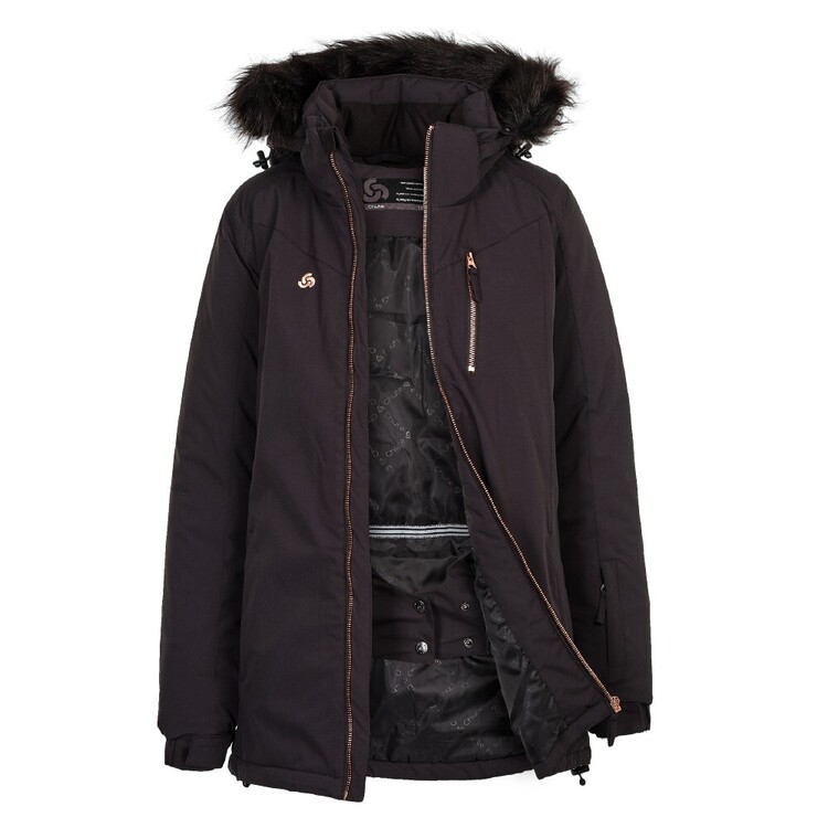 A classic black ski jacket with chic rose gold trims, the Chute Catherine 4 Women’s Snow Jacket is hip length for extra warmth, so you can keep warm and dry in style. Stretch has been added into the fabric this year for ease of movement on the slopes and the recycled materials and PFC free water repellant finish reduce environmental impact. With a removable hood, removable faux fur trim and lots of pockets this essential jacket is practical as well as looking great.