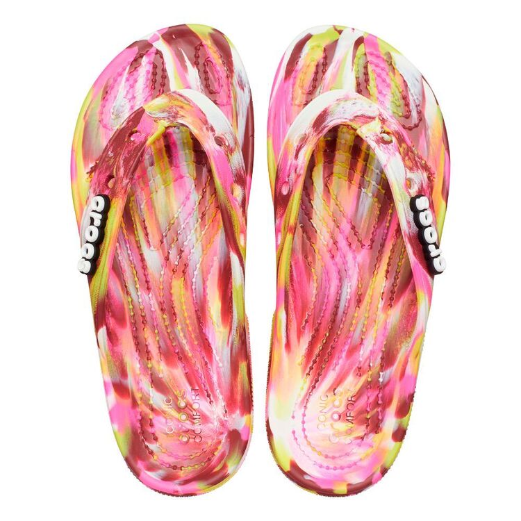 Crocs Classic Marbled Flip Thongs Electric Pink & Multicoloured
