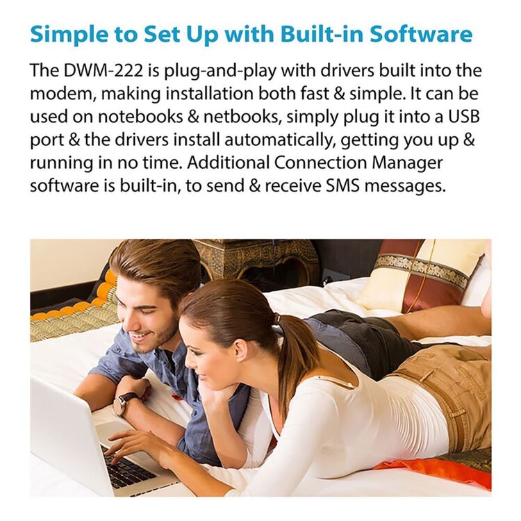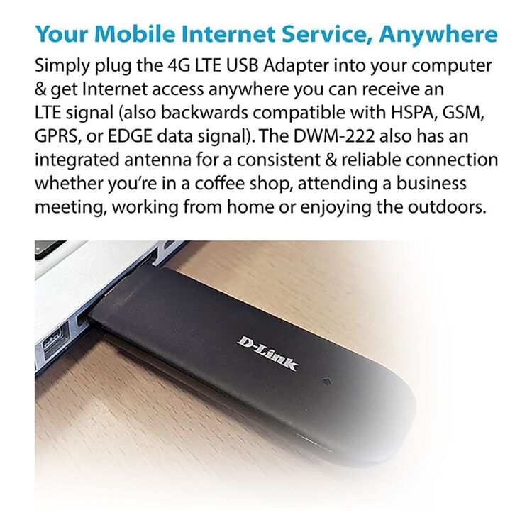 The D-Link DWM-222 4G LTE USB Adaptor Travel Modem is a portable travel modem that gets you a mobile Internet connection wherever you are with fast downlink and uplink data rates, as well as low latency for a high-performance, responsive connection when you’re on the road. Never have to skip the kids movies or lose your way with this modem – available in-store at Anaconda today.