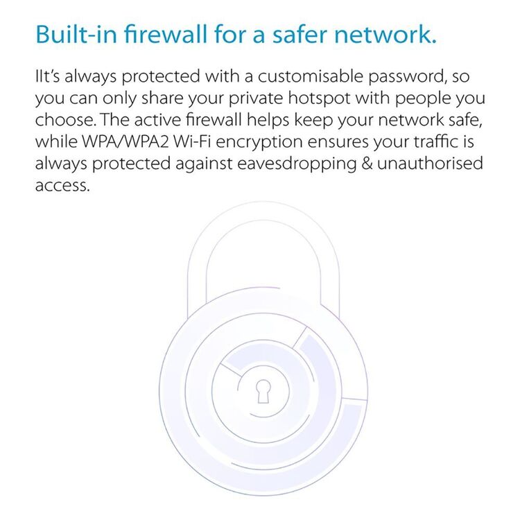 The D-Link DWR-933 4G LTE Cat 6 Wi-Fi Hotspot is a high-speed broadband wireless WAN (WWAN) to Wi-Fi mobile hotspot. The DWR-933 uses a cellular Internet connection to give you a simple and fast Wi-Fi network anywhere you need one. Instead of being limited to a single USB device, the DWR-933 allows you to share your connection with any Wi-Fi enabled device. The convenient size and all-day battery lets you stay connected anywhere. Available now at your local Anaconda store today!