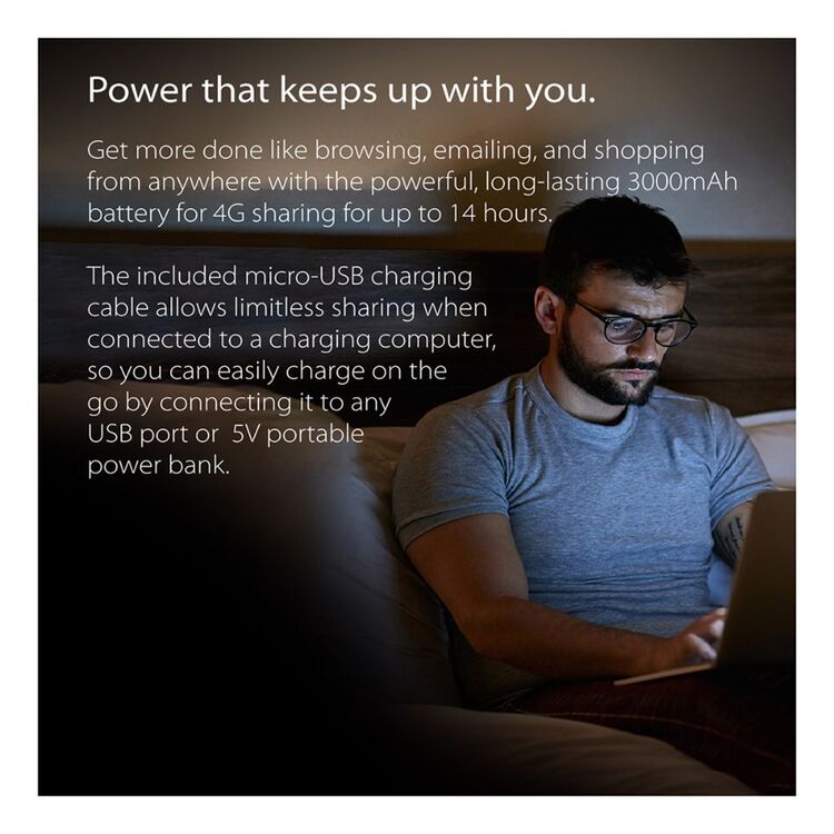 - Built-in SIM card slot to share your high-speed mobile Internet connection
