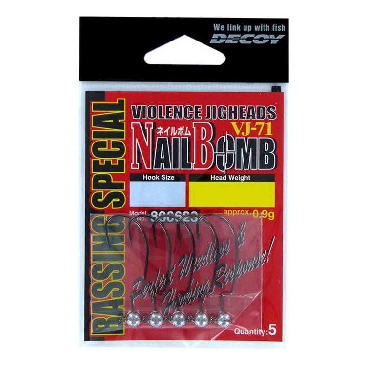A sensational choice, the Decoy Nail Bomb Size 2 Jig Heads Pack will definitely satisfy the shrewdest critics. Decoy keeps on delivering great products at great value. Check out the full range today! The Decoy VJ-71 Nail Bomb’s are ideal for a wide range of soft plastics were you want to use a weedless jighead with a balled weight.