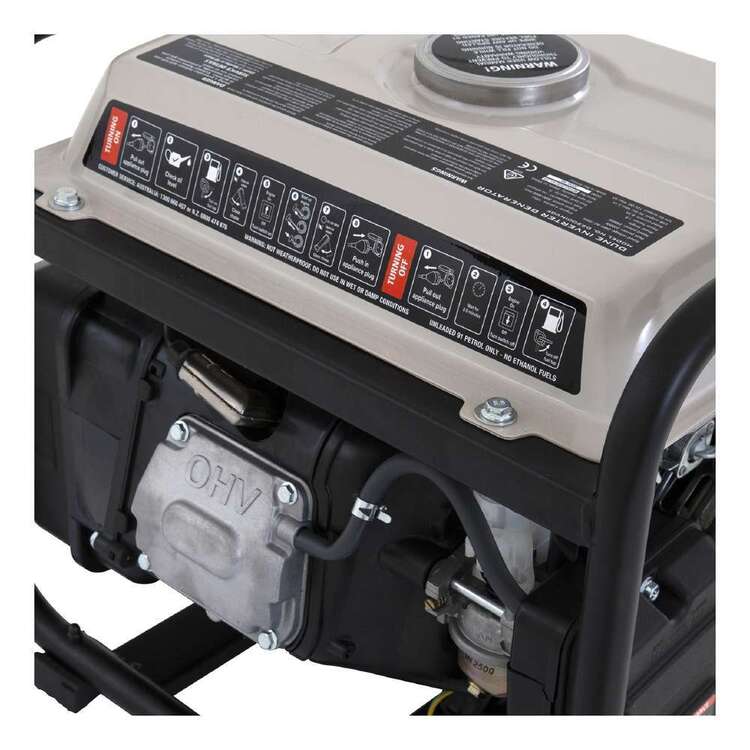 Open frame 4 stroke pure sine wave generator produces 240V power suitable for sensitive devices such as TV’s and laptops.