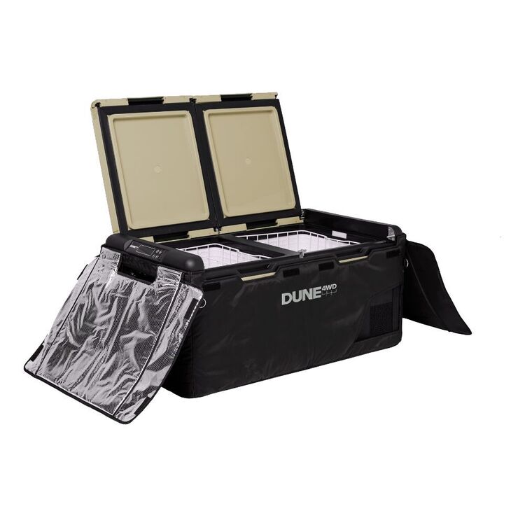 The Dune 4WD 95L Fridge/Freezer Cover is a must have for your latest investment to keep it safe from the weather and free from wear and tear. This cover fits nice and snug over the Dune 4WD 95L Fridge/Freezer, providing a sleek design and large zippers for easy management and removal. Why wait until your next adventure to secure this layer of protection, its available online or in-store now at Anaconda. Check out our Adventure Club for the best deals this season.