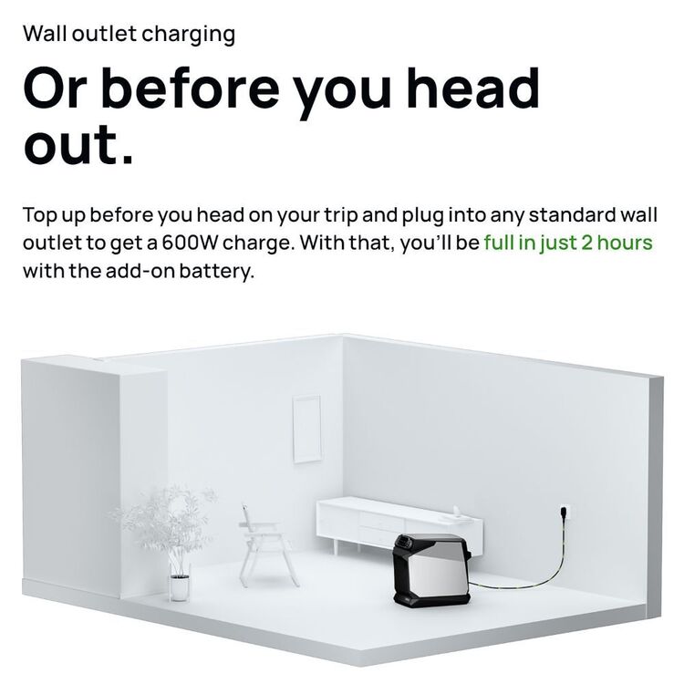 Charge anywhere: Wall outlets, solar, car or even portable power station charging