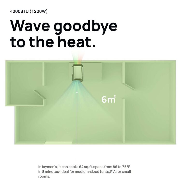 - Fast cooling with the power of 4000BTU’s (1200W) the Wave can cool your tent, RV, or small to medium space by 6 degrees in 8 minutes flat