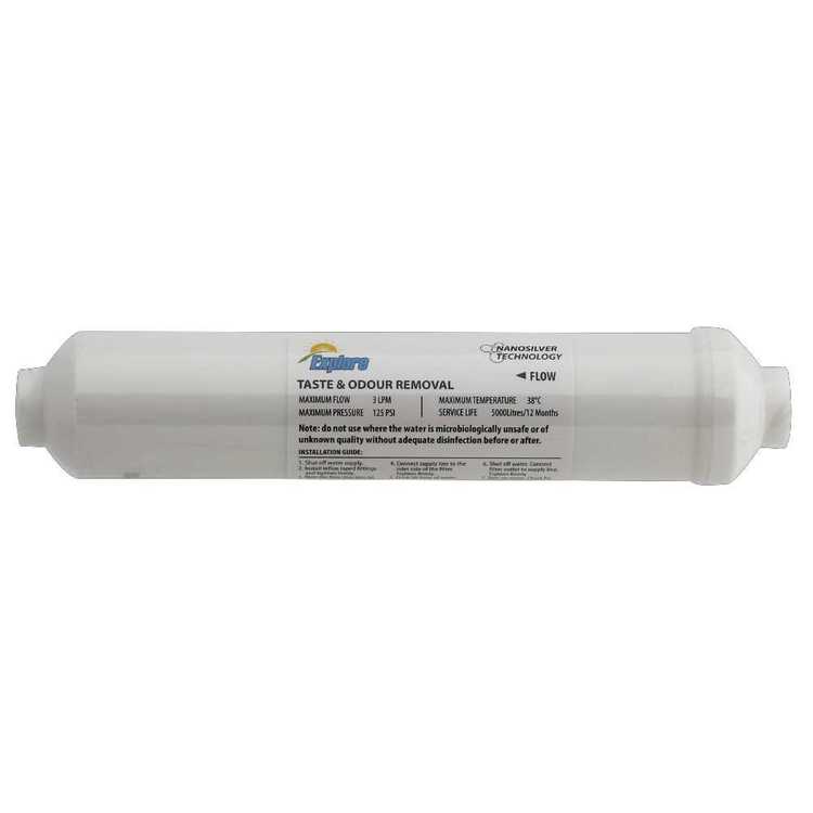 This water filter is ideal for caravans, camper trailers and boats, reducing dirt, rust and algae as well as removing chemical tastes and odours from drinking water.