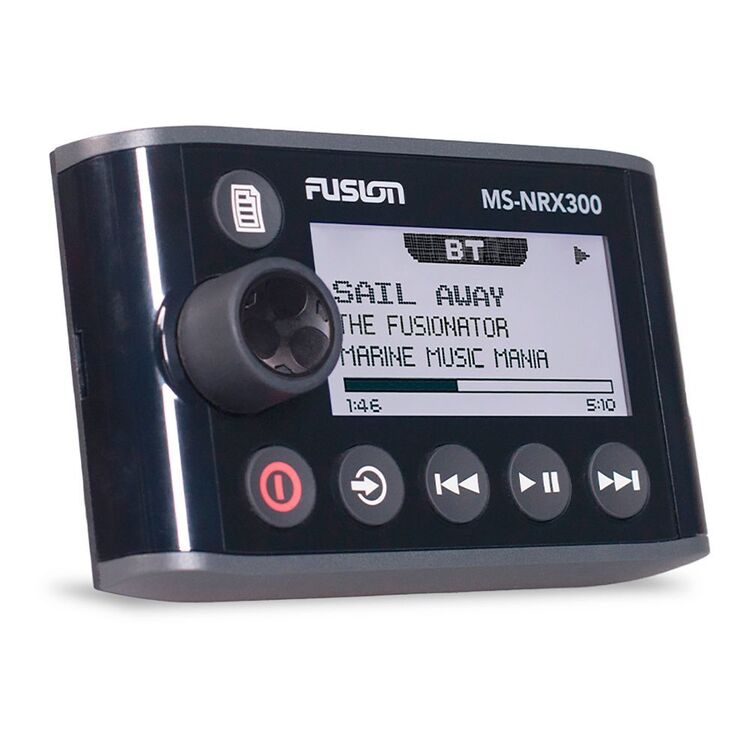 The Fusion MS-NRX300 IPX7 Wired Remote is an out of the box solution for adding localized control of a compatible FUSION marine entertainment system to any vessel. The MS-NRX300 features a sleek new innovation: the glass helm flush mounting option. You can now choose either a flush mount for a stunning glass helm finish, or you can easily install with the conventional dash mount finish. Anaconda has a wide range of top-shelf boat and marine speakers and accessories, shop it in-store and online today!