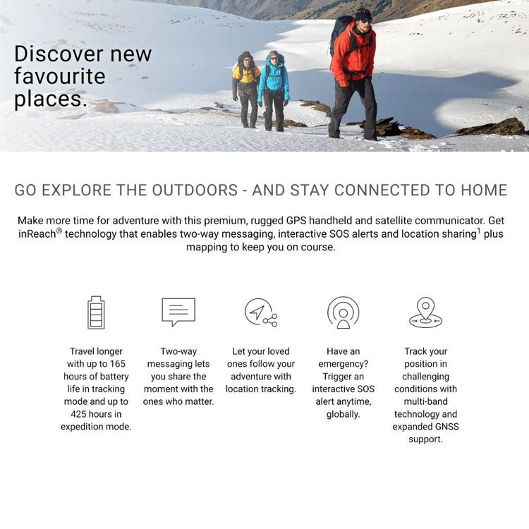 Enable two-way messaging and location tracking via the 100% global Iridium? satellite network, and trigger an interactive SOS to Garmin ResponseSM, a 24/7 staffed emergency response coordination centre (active subscription required – jurisdiction restrictions may apply)