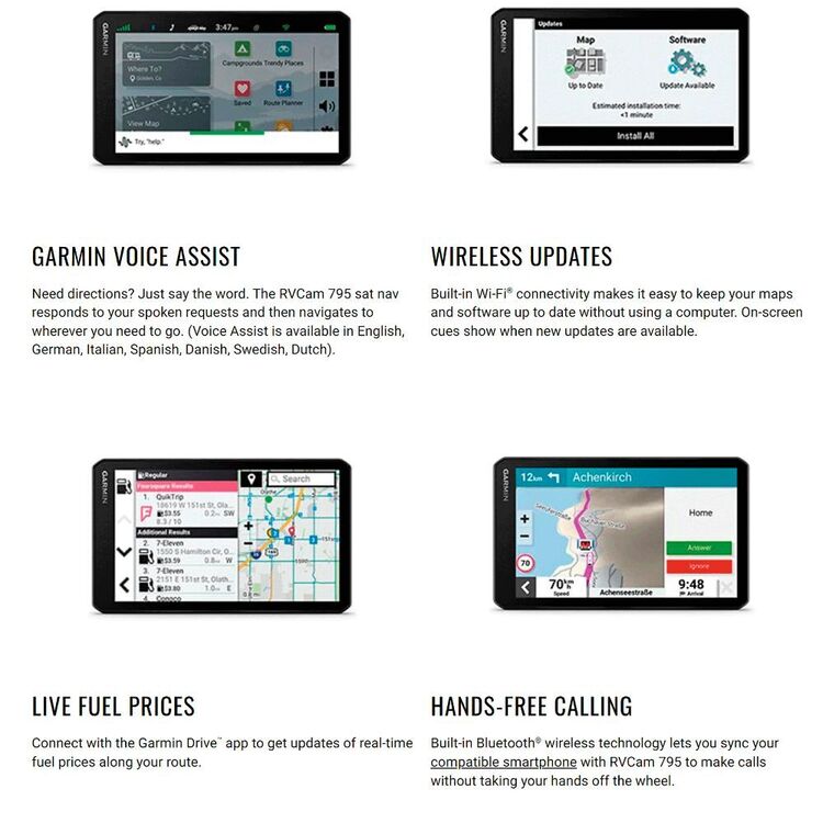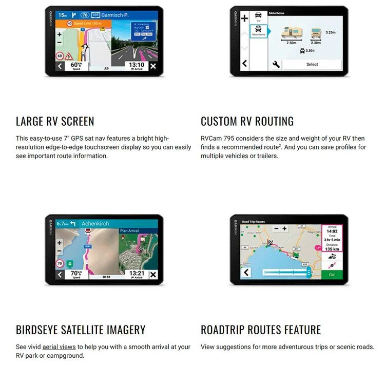 Garmin RVCAM 795 7" Camper GPS Satellite Navigator with Built-in Dash Cam Black