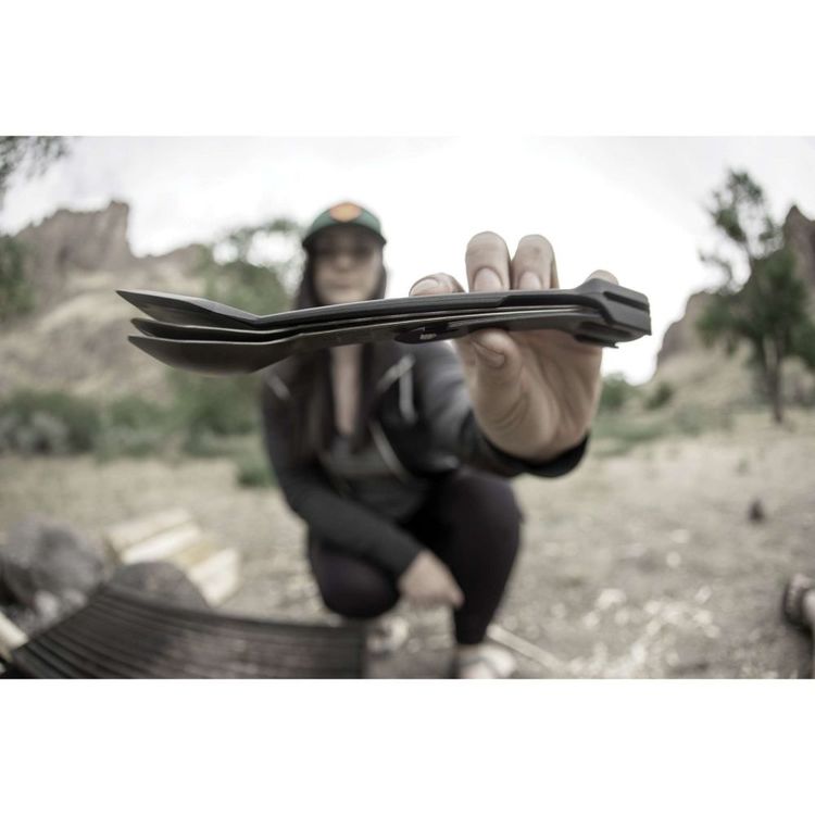 The Gerber ComplEAT Tool is the perfect tool for on the trail meal preparation, cooking, cleaning and eating. This tool has all your bases covered with a fork, spoon, spatula, and 4 function multi-tool that nest for transport as well as snap together to convert into functional tongs. Mealtime in the country often equates to lugging multiple utensils in prime real estate: the backpack. Gerber looked at this process, from prep to clean up, and delivered an innovative tool that solves for all of it.