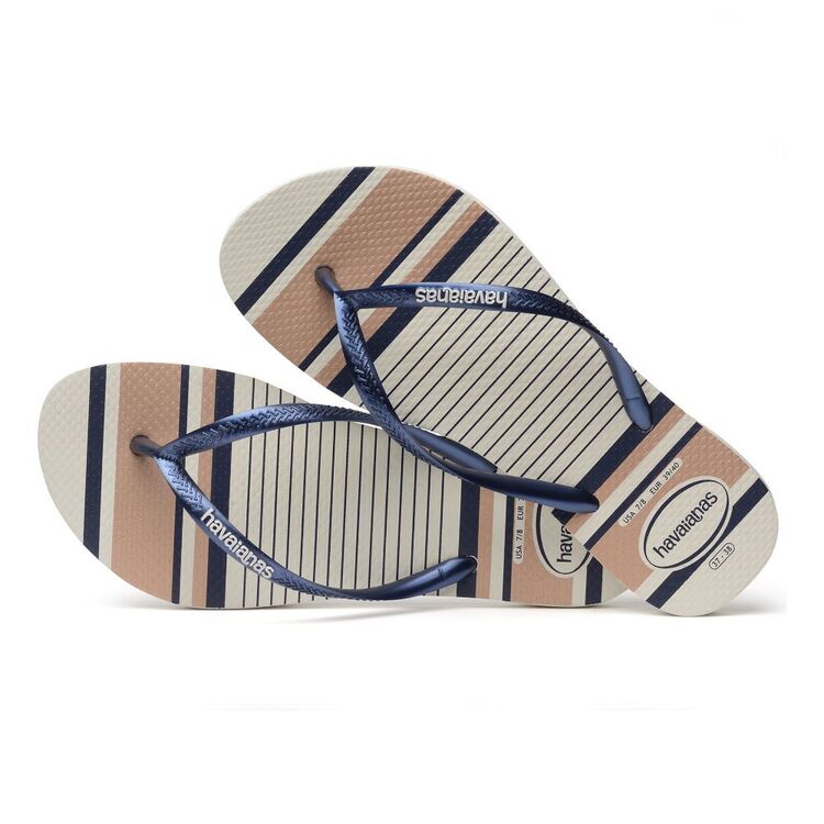 Everyone’s favourite thong, the Havaianas Women’s Slim Nautical Thongs are as comfortable as ever! Featuring that iconic slip on design, a Nautical inspired print with a slim strap and that signature textured footbed on flexible premium Brazilian rubber. Shop more of Havaianas great range for the whole family at Anaconda today!
