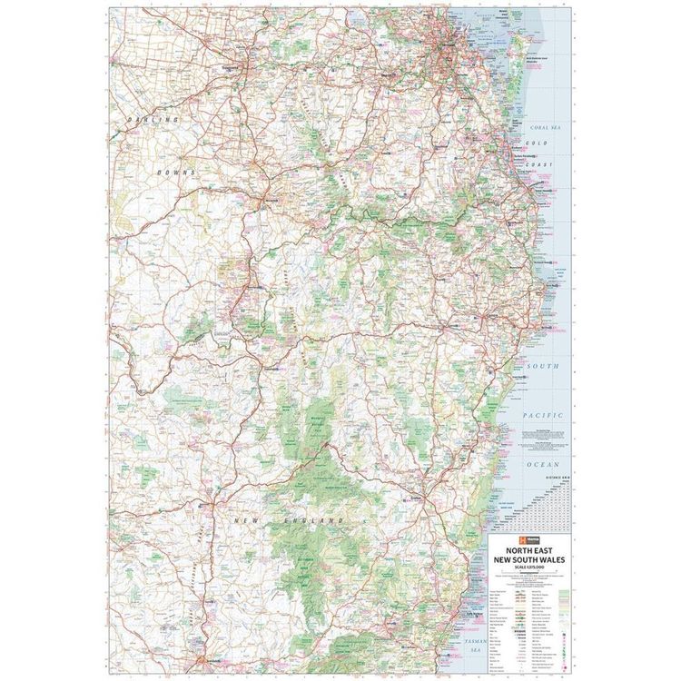 A regional map of North East New South Wales (1:375,000) that is the perfect companion for touring through North East New South Wales (NSW). The map features information on the major touring routes through the region including the Summerland Way, Bruxner Highway, Waterfall Way and Gwydir Highway, as well as major tourist attractions along both the Pacific Highway and the New England Highway. Also included are listed national parks within the region, contact information and events.