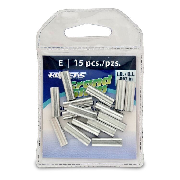 The HI-SEAS Aluminium Sleeves 15 Pack are the crimp of choice for use with monofilament leaders. These tournament grade sleeves are manufactured to exacting tolerances and are extruded from the perfect alloy so they will compress consistently without cracking. You can’t buy a better crimping sleeve!