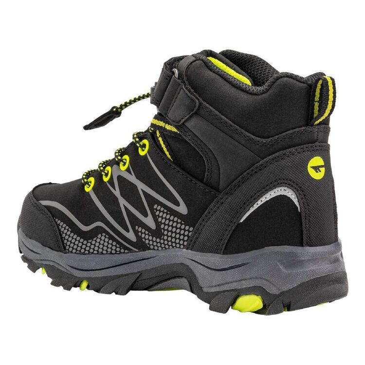 Hi-Tec Kids’ Blackout Waterproof Mid Hiking Shoes Black & Lime