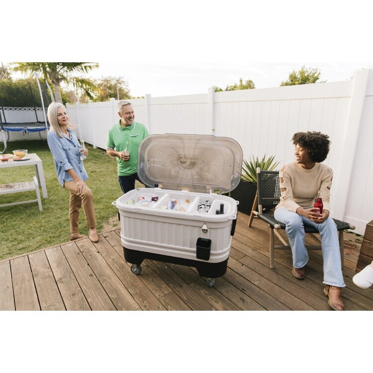 Want to make your next party cooler than the last one? You need the Igloo Party Bar – part cooler, part bar cart and entirely fun. Packed full of handy design details like locking casters, bottle opener, dividers and lots more.