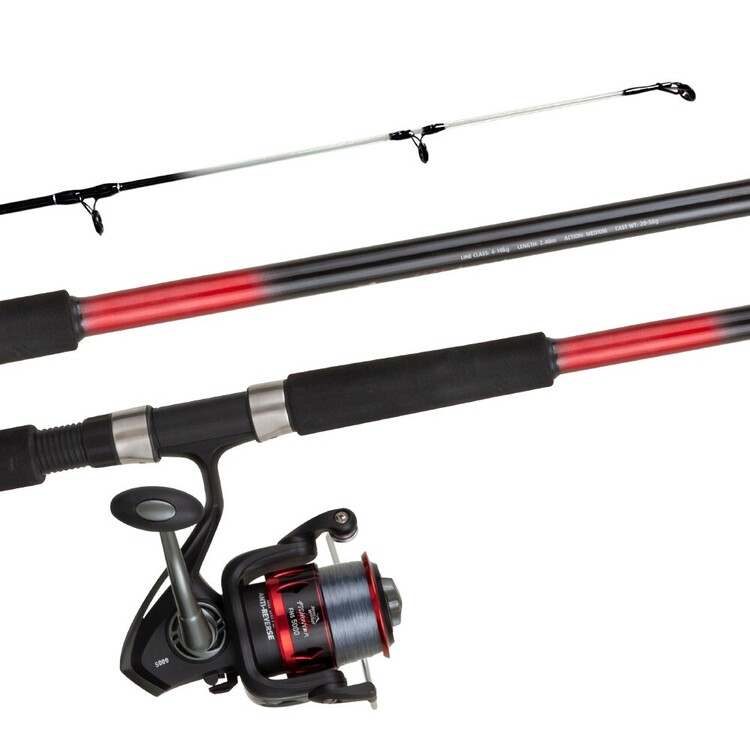 This Fishunter Ultimate General Purpose spin combo includes an 8’0″ rod matched with a 4000-size reel that’s spooled with line and ready to fish. It is a versatile option and a hit with land-based anglers who want one rod to cover many jobs. The 8’0″ length provides good casting distance from river banks, jetties, rock walls and can even be used as a beach rod if the surf conditions are mild. It is suitable for light favourites like bream and flathead, as well as tailor, salmon, jewfish and many others. The two-piece format makes it easy to store and to transport.