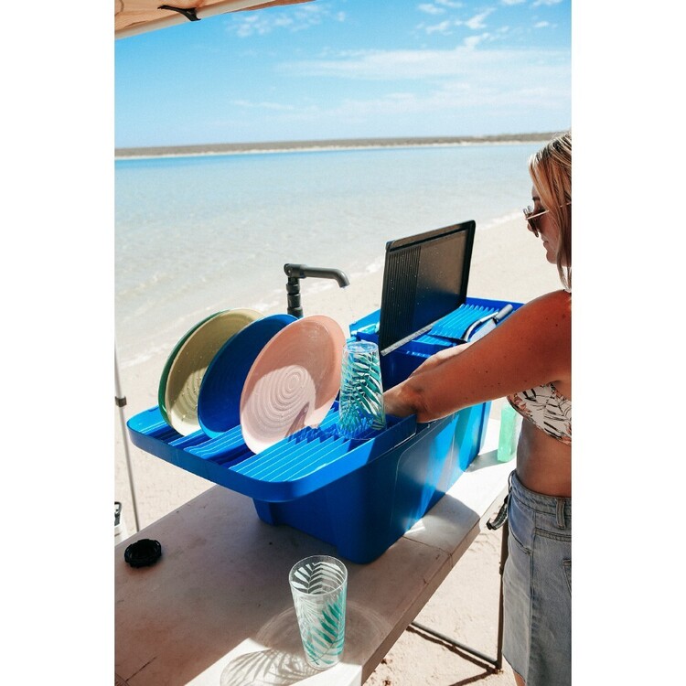 Featuring a dishwashing set up – Unpack a proper kitchen sink, complete with a pivoting and tilting faucet, drain and dish racks solid enough to support cast-iron pots.