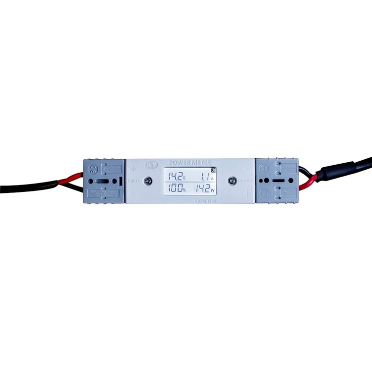 Design registered, and designed and developed by KT, the innovative KT 125Amp In-line Power Meter is an easy way to view the Volts, Amps, Watts and Battery Percentage of your 12V devices by a simple touch of the LCD display. This unit is suitable for use with any 12V application and ideal for use with Solar Panels, camping & Marine Applications, 4×4 and Caravan applications.