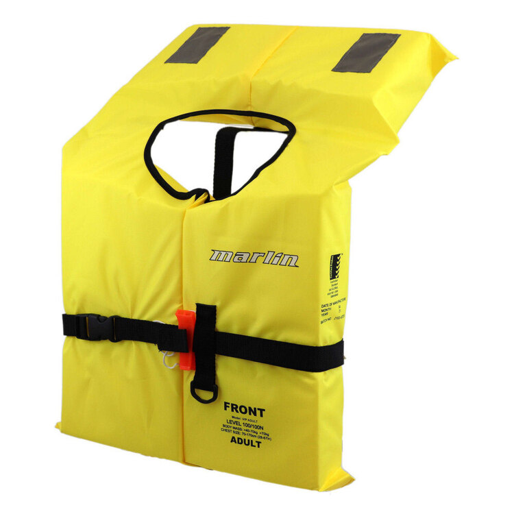 Certified to Australian Standard AS4758.1, the Marlin Adult VIP Level 100 Foam PFD Life Jacket is great for humans over 40 kilograms and features a whistle for attracting attention. This PFD is a highly visible bright yellow colour for maximum effectiveness. The PFD is lightweight at approximately 650 grams and is suitable for offshore use, this PFD is suitable for body mass over 40 kilograms.