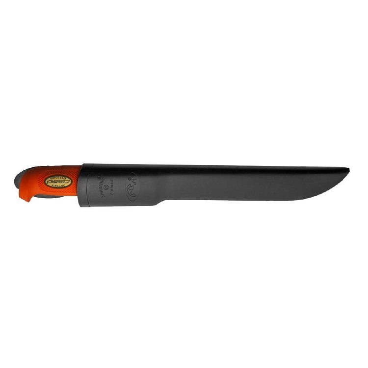 The Marttiini Martef Coated 7.5″ Knife with Orange Sheath is a good Fishing Knife is key to any real fishing trip. The Marttiini Fillet knife comes in size 6in through to 7.5in and is made of high grade quality stainless steel. The non-slip rubber handle and the flexible stainless steel blade ensures a clean cut every cut.