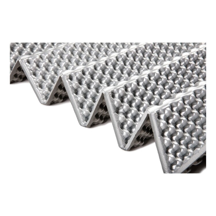 A simple yet comfortable choice for your weekend camping trips or hiking adventures, the Mountain Designs Hikelite Sleeping Mat is extremely lightweight and packable. The foldable, accordion-style construction reduces weight and bulk, whilst the egg-carton pattern increases cushioning and softness, and also traps warm air to improve insulation. A reflective outer layer further enhances warmth by returning heat to your body. The premium moulded closed-cell foam makes the mat lightweight but exceptionally hard-wearing, and the folding configuration enables you to adjust the mat’s length, making it useful as a knee pad or even to stand on when changing boots.