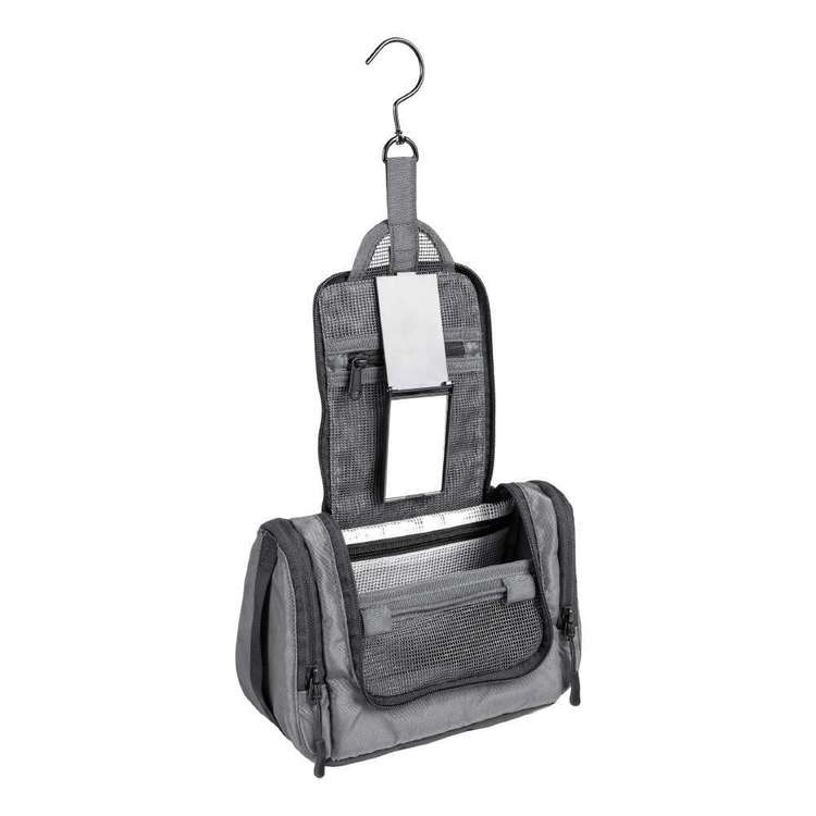Make sure your hygiene is sorted while travelling with the Mountain Designs Short Haul Toiletry Bag. Water-resistant and highly durable, this bag comes in a convenient, compact size that gives you organisation and storage while on the go. The main compartment offers ample space for the bulk of your toiletries and is easily accessible through a large U-shaped opening. Inside there is a zippered accessories pocket for smaller items and a zippered drip-proof pocket to further safeguard your stuff. It also features a hanging hook, removable mirror, two external zippered pockets, and two hanging cords for a towel, clothes or other kit. The bag is reinforced with foam padding in its sides, base and back to ensure your toiletries are protected, while the water resistant construction prevents leaks from getting into your luggage.