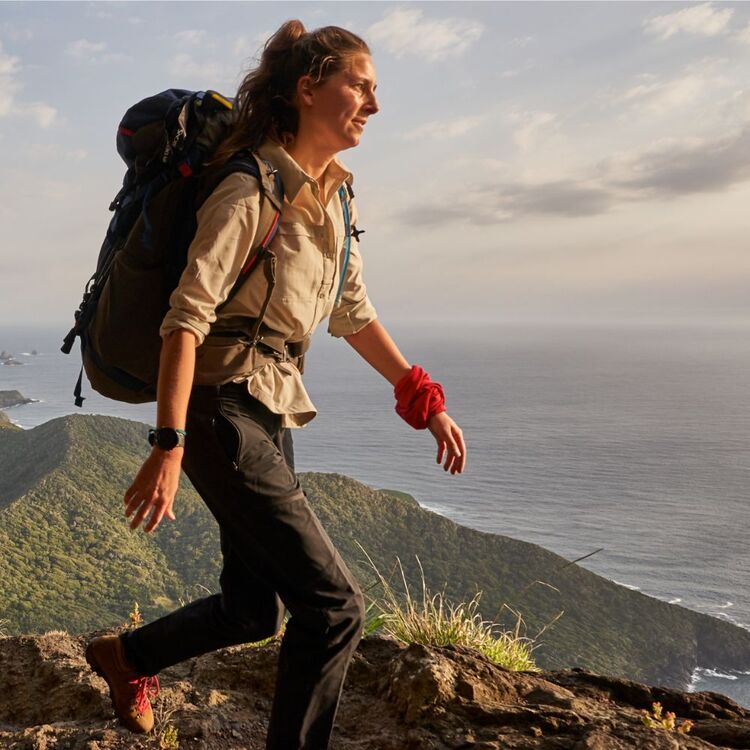 This Mountain Designs Women’s Florentine long sleeve hiking shirt brings you lasting comfort and protection on active trail adventures or long travel days during summer. Made from 100% recycled polyester, it offers stretch, breathability and a lightweight feel to maximise performance in warm weather. Roll-up sleeves and mesh ventilation panelling provide cooling when conditions are especially hot, and you can even extend the neck collar for extra sun protection when necessary. Polygiene anti-odour technology inhibits odour-causing bacteria so you stay fresh for longer, while a moisture-wicking, quick-dry finish also helps to manage perspiration. Two Velcro chest pockets and a concealed stash pocket in the hem give you plenty of places to tuck away your quick-grab items while on the move.