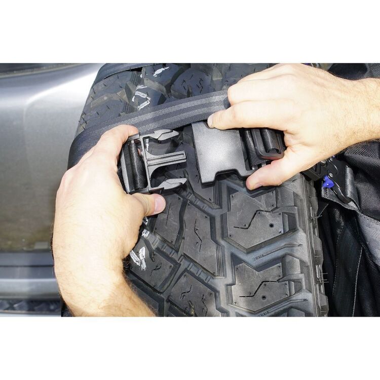 Your rubbish is secure with a YKK Chunky zip and double, reinforced sides. The Rear Wheel Bin comes with a stainless steel drainage eyelet to release any fluids, a quick-fit, 50mm harness system that can be installed and removed in 30 seconds and will fit any tyre size including caravan and camper spares.