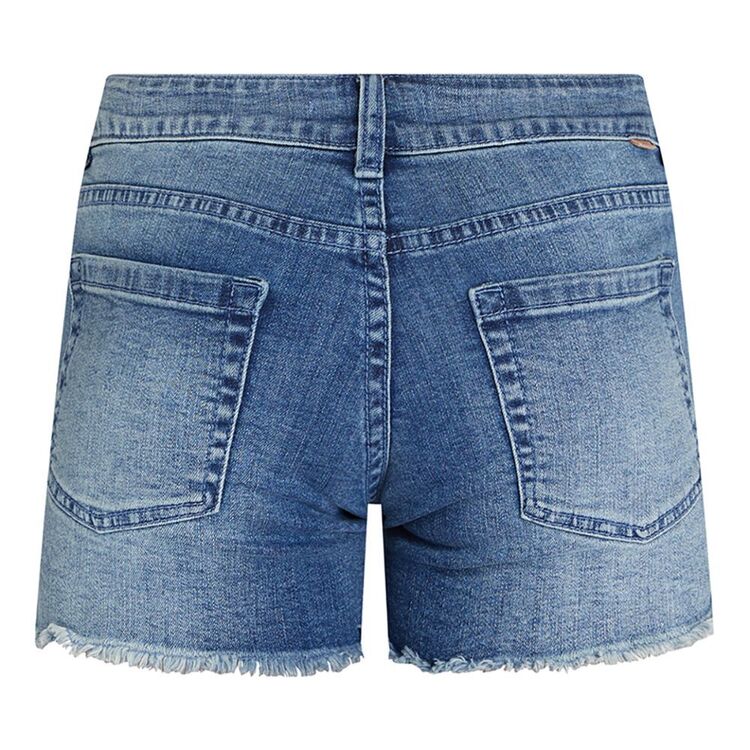 O’Neill Youth Girls’ Aiden Denim Shorts with front button closure, a logo patch, side and back pockets and made from comfortable 100% cotton. The O’Neill range of beach and water sports clothing and footwear continues to inspire surfers and beachgoers since 1923. The range features many items made from sustainable materials, and support the initiatives to “take care of our playground.”