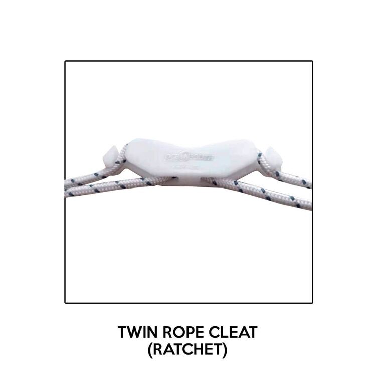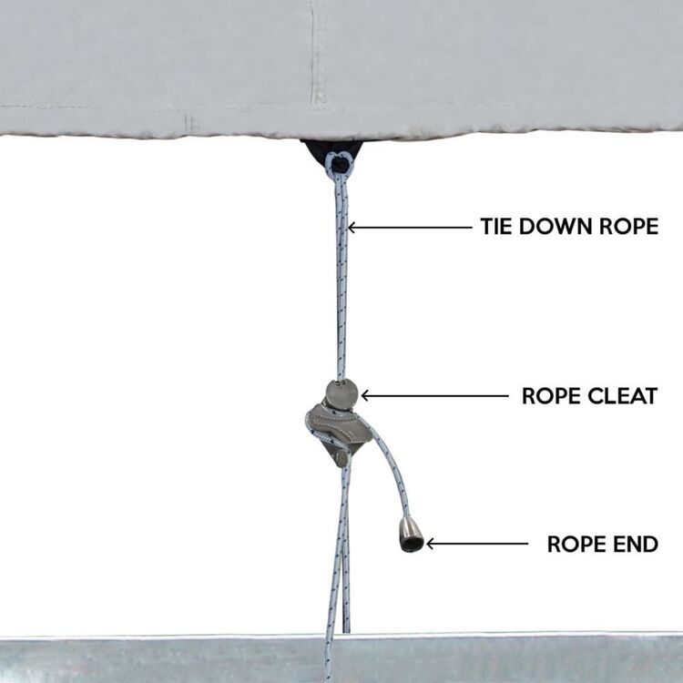6mm breaded rope encased in hem, rope ratchet for easy gathering and tighten down the cover