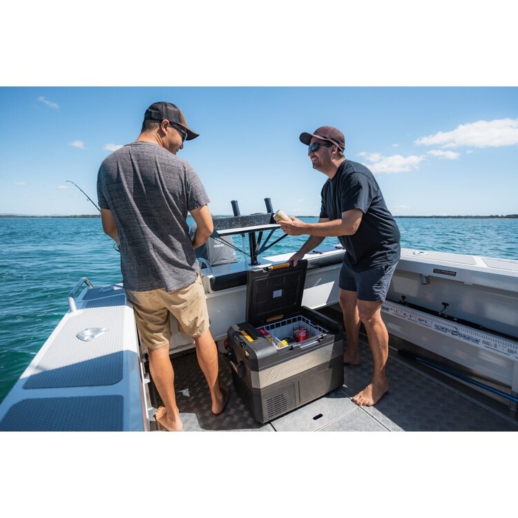 Introducing the new OZtrail 55L Lithium Portable Single Zone Fridge/Freezer designed so you don’t need an expensive dual battery system or melting ice to keep your food and drinks cold – it’s the easiest way to keep your drinks chilled when you’re outdoors. The integrated 30ah lithium battery will run your fridge or freezer unplugged for up to 36 hours, allowing you to hit the beach or throw it in the boat without needing to think about power or ice.