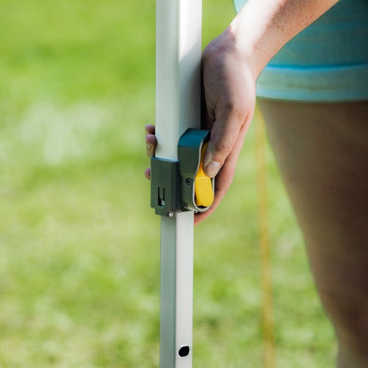 The easy grip ABS buttons allow for easy height adjustment to one of the three height settings. This gazebo also comes with a heavy duty wheeled carry bag for easy transportation and protected storage, featuring side pockets for pegs and ropes as well as a separate pouch for your canopy so it doesn’t rub against the frame whilst in storage.