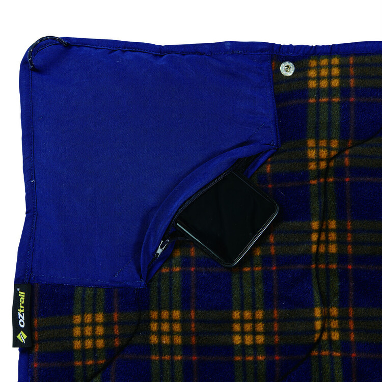 Stay snug around camp, the van or at home with the Oztrail Drover Roll Outdoor Blanket. Low noise brushed polyester is combined with warm fleece for ultra comfort, this blanket uses 80% recycled fill which equates to 26 plastic bottles. The snap side buttons allow for the blanket to become a wearable poncho while the built-in pocket keeps your valuables safe and on hand. When time to store, simply roll the blanket into its built-in storage sleeve – to stow away or use as a pillow. The blanket has been treated with a limited fire retardant dye. Stop fighting to keep warm outside or inside the home, get yourself this outdoor blanket! It’s available online or in-store at Anaconda now, right in time for your next trip.