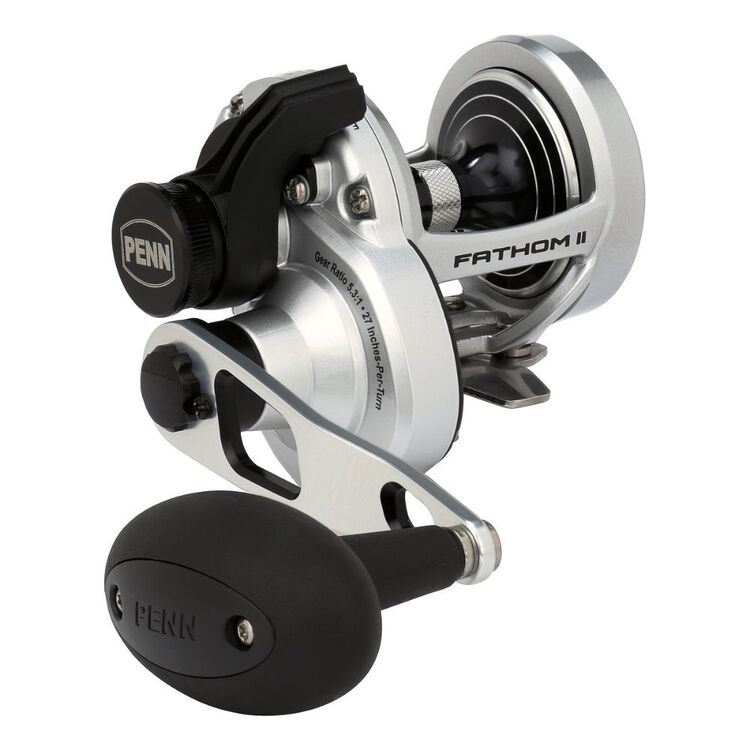The PENN Fathom II Lever Drag Overhead Reel is the perfect reel for the angler who demands the best in performance, durability, and control. With features like the full metal body and sideplates, stainless steel main and pinion gear, Pull-to-Turn preset adjustment, Dura-Drag? washers, and 5 shielded stainless steel ball bearings, this reel is engineered to handle everything from light inshore fishing to heavy offshore battles. So whether you’re a seasoned angler or just starting out, the PENN Fathom II Lever Drag Overhead Reel is the only reel you’ll need for all your fishing adventures. Shop a wide range of fishing rods, reels, combos and more both in store and online at Anaconda today!