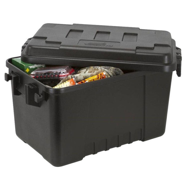 The Plano® Sportsman’s Storage Trunk is suitable for all weather due to its construction. The storage box is easy to stack due to it’s molded grooves. Other features include four reinforced padlock holes and tie-down brackets with two heavy duty locking latches on each side of the medium size trunk.