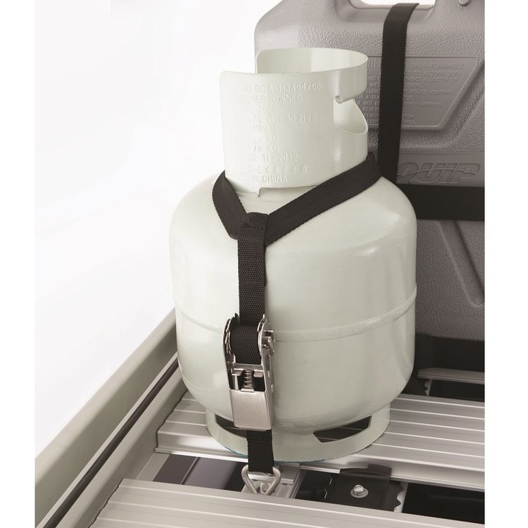 Safely and securely carry a 4kg gas bottle on your roof top basket or tray with the Prorack Alloy Tray Gas Bottle Holder.