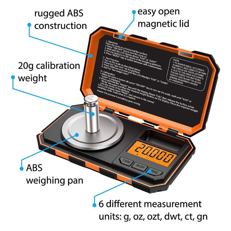 - Compact, lightweight and portable pocket scale perfect for prospecting