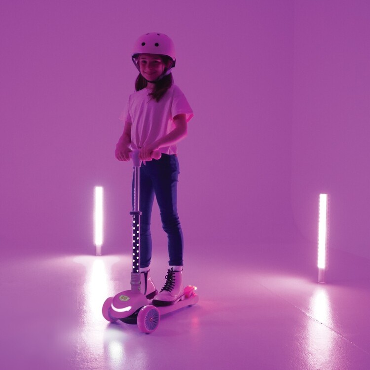 Scoot in style on the 858 Elite LED Light Up Scooter. These colourful 3-wheeled scooters feature over 50 LED lights and 8 different light modes. Your kids will love the light up wheels and front bar.